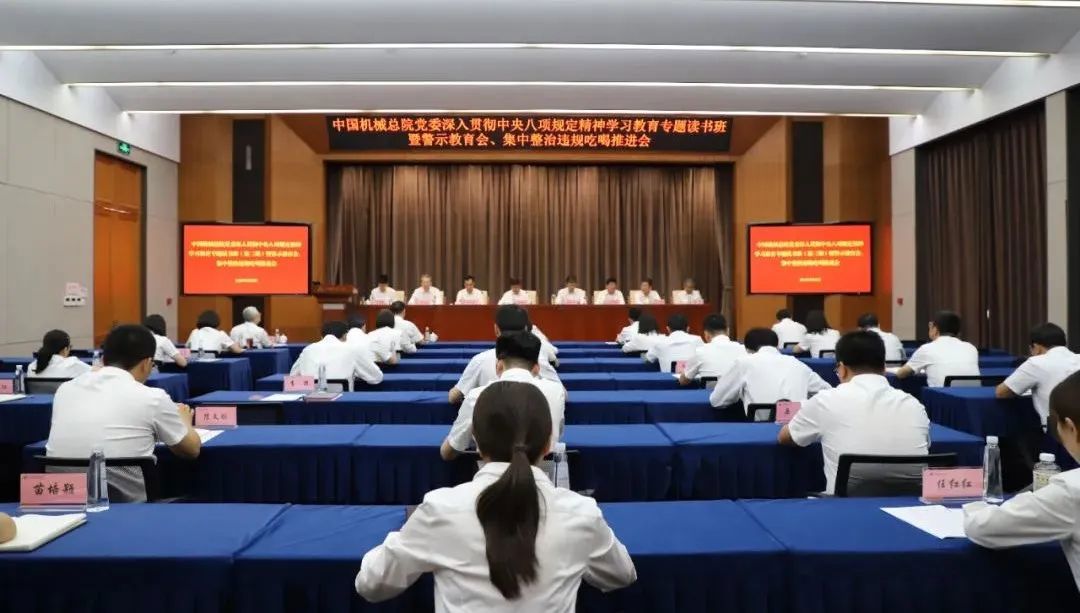 6月19日,中國機械總院黨委召開深入貫徹中央八項規定精神學習教育第三期專題讀書班暨警示教育會、集中整治違規吃喝推進會,深入學習習近平總書記關于加強黨的作風建設的重要論述,傳達上級會議精神,深刻剖析典型案例,強化警示教育,部署集中整治違規吃喝,扎實推動學習教育走深走實,以作風建設新成效更好保障集團高質量發展。
